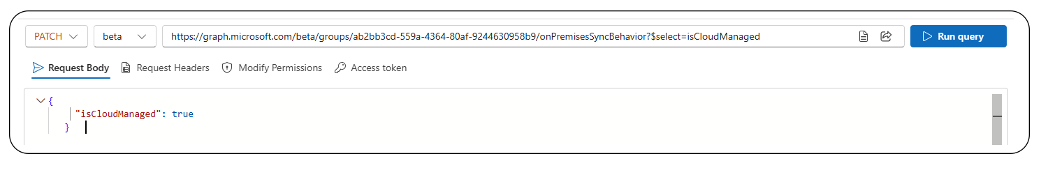 PATCH https://graph.microsoft.com/beta/groups/{ID}/onPremisesSyncBehavior