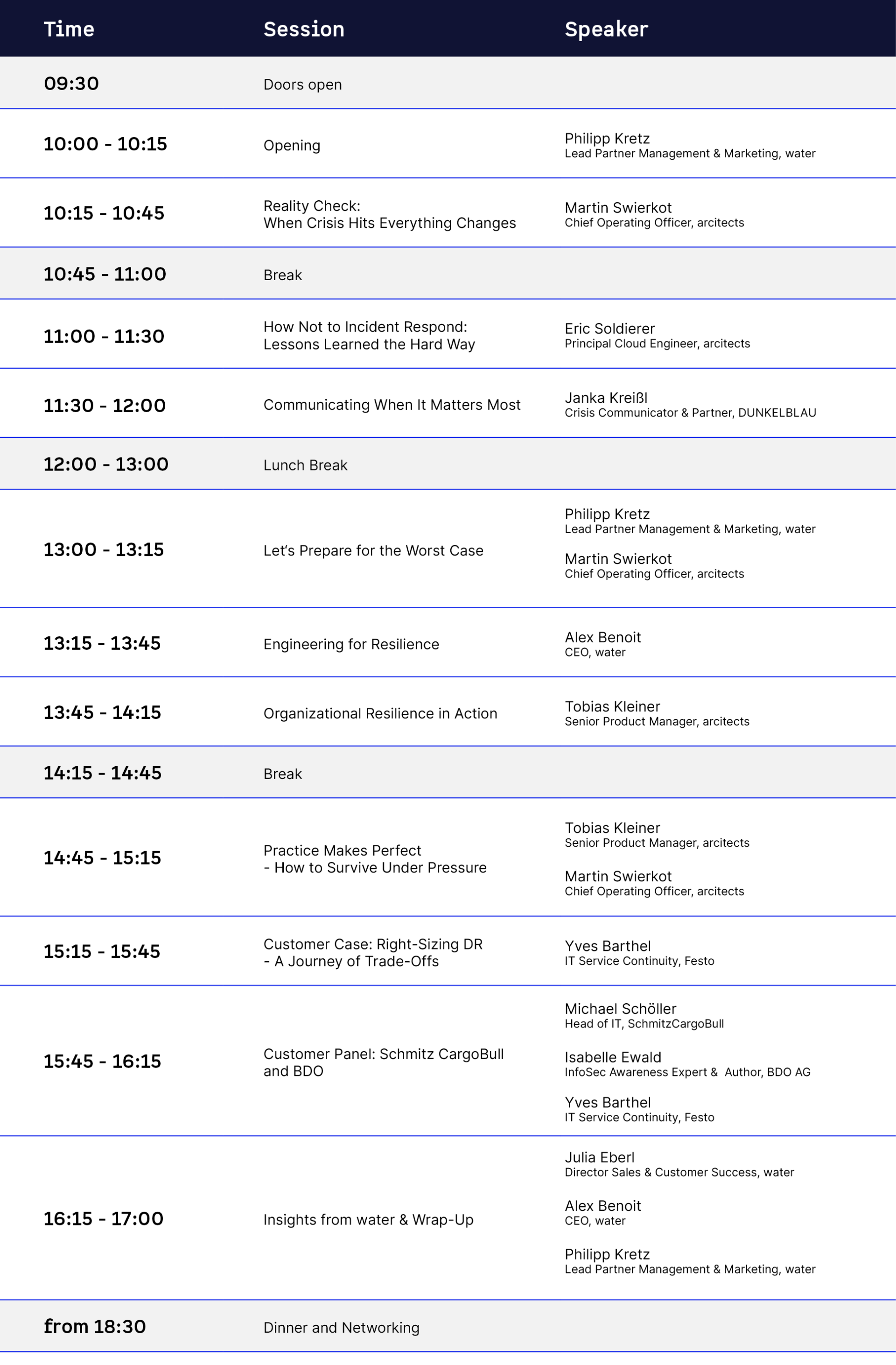 Join us in Duesseldorf to learn what separates theory from practice in business resilience – no buzzwords, just actionable strategies.